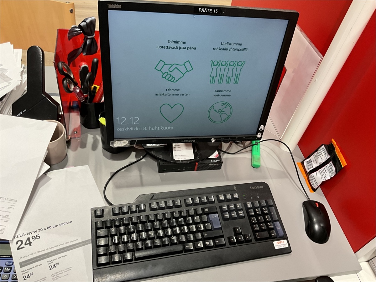 Kassapisteen näytöt ja näppäimistöt yhteensä 6 kappaletta