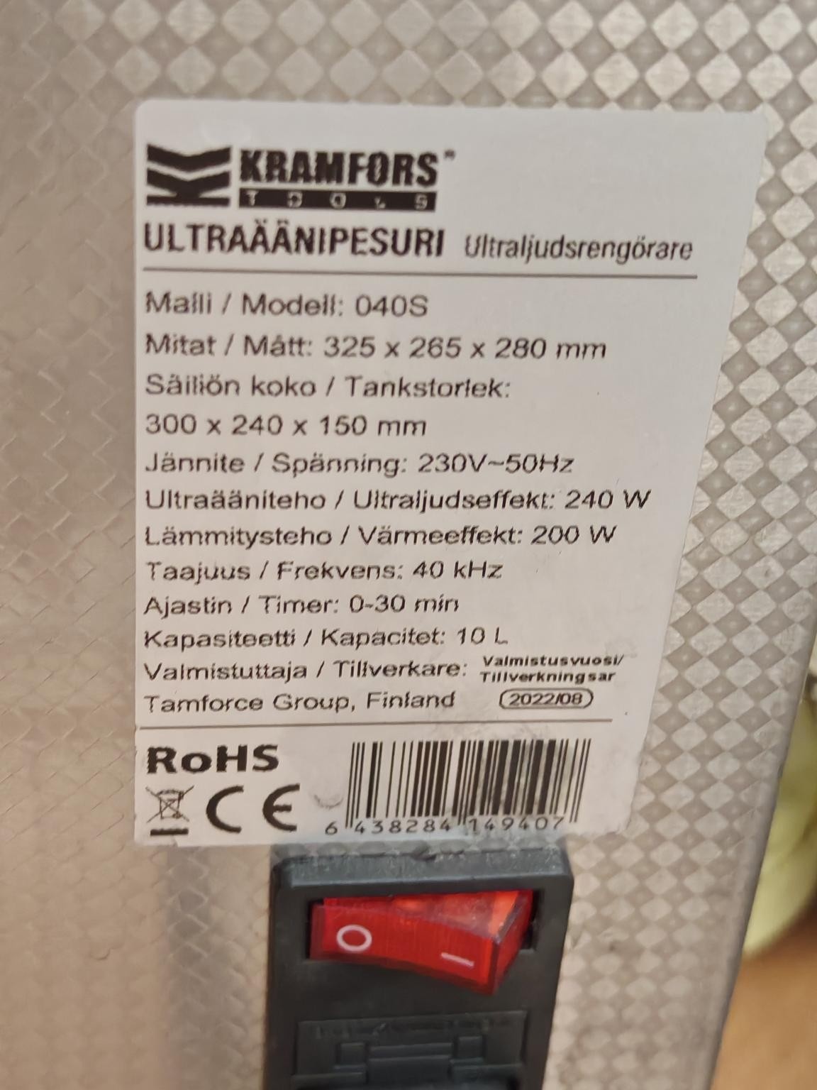 Myyntikohteet » Vetubi Oy:n konkurssipesä, TAMPERE (3419244-2), 12.04.2026 » 04. Ultraäänipesuri Kramfors UÄ-100