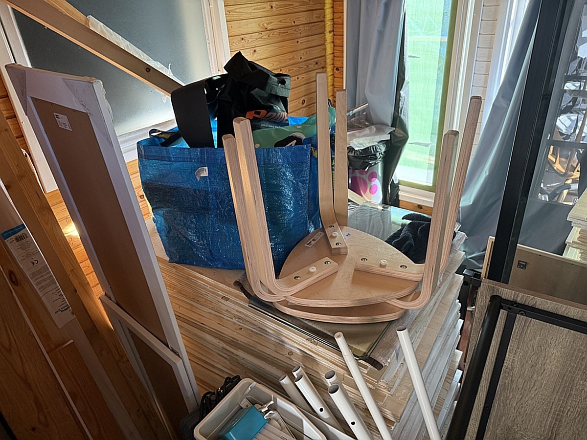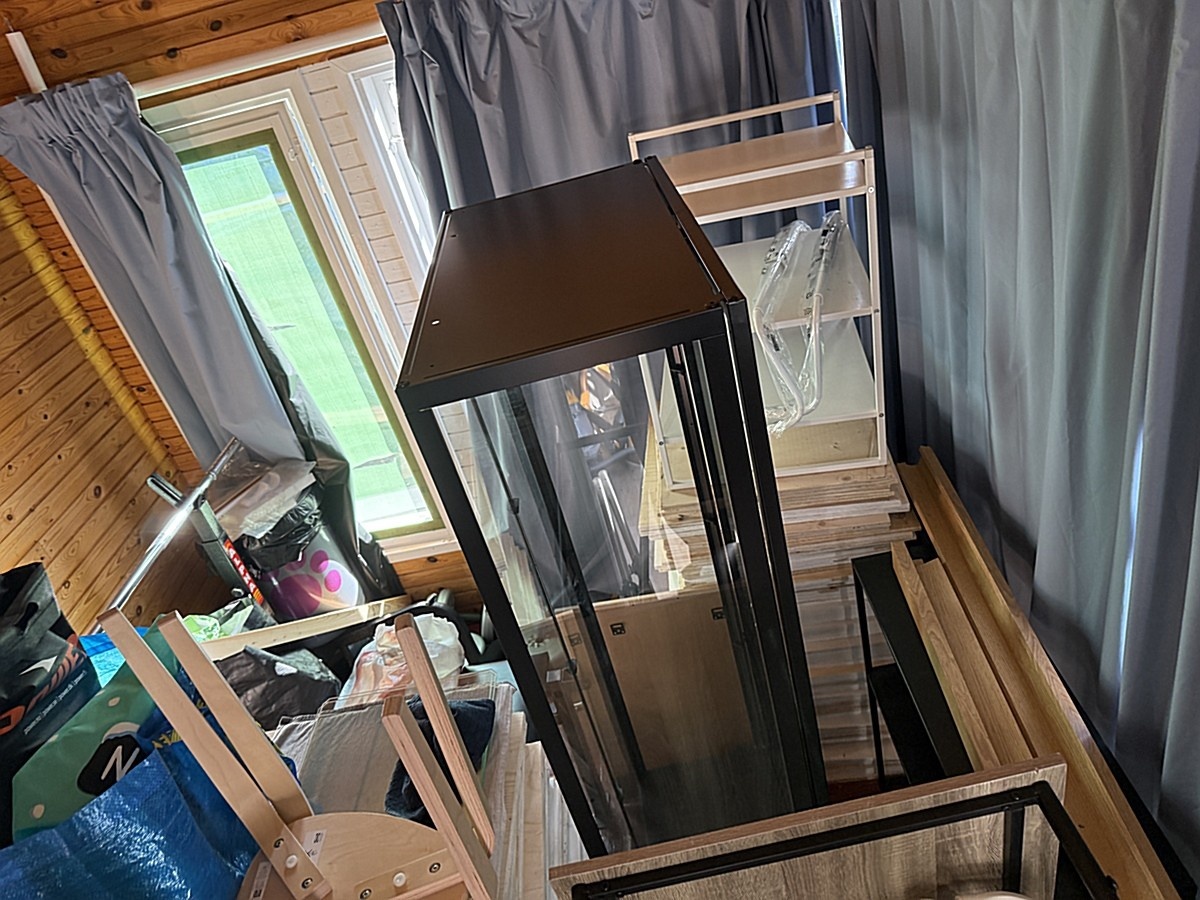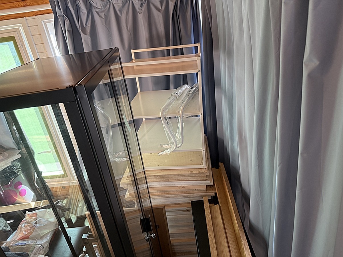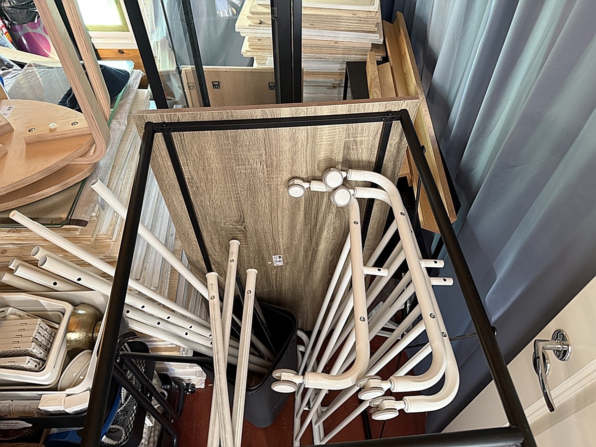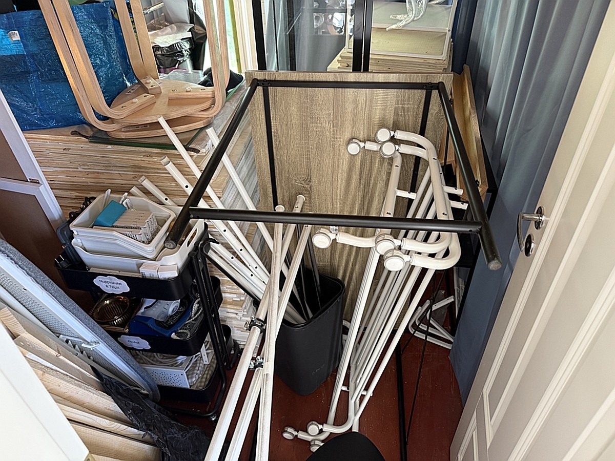 Myynti hyllyt/pöydät ovat valmiiksi purettuina.