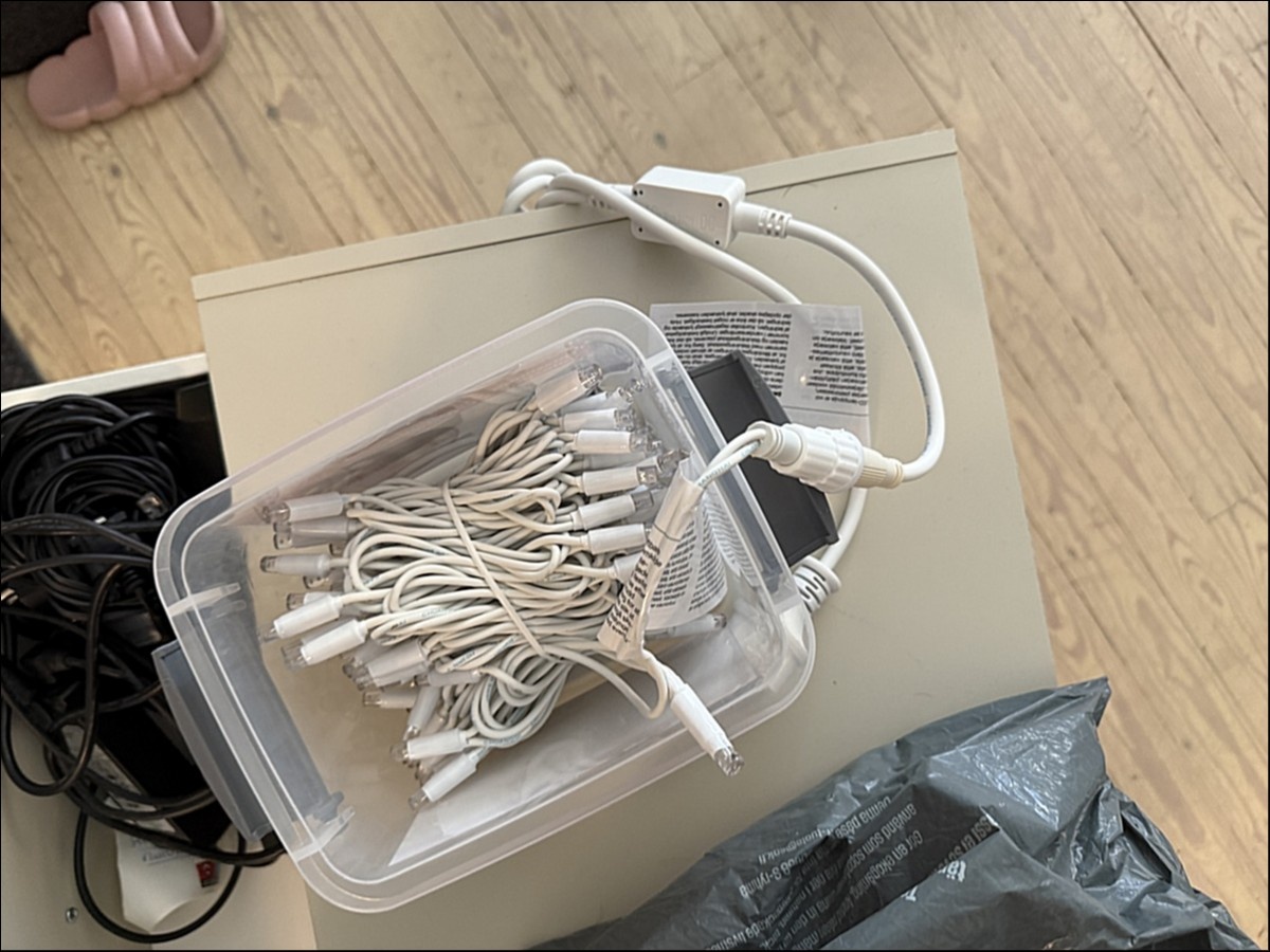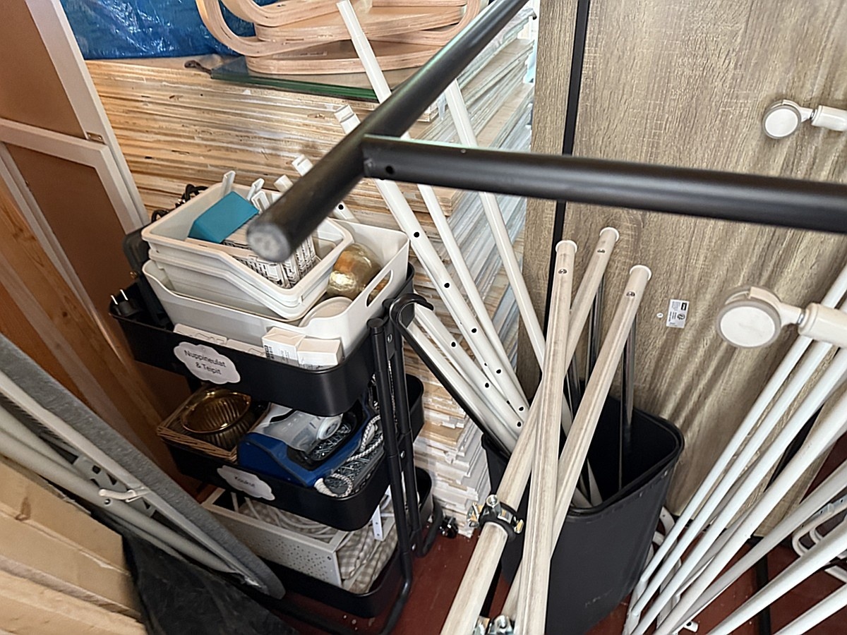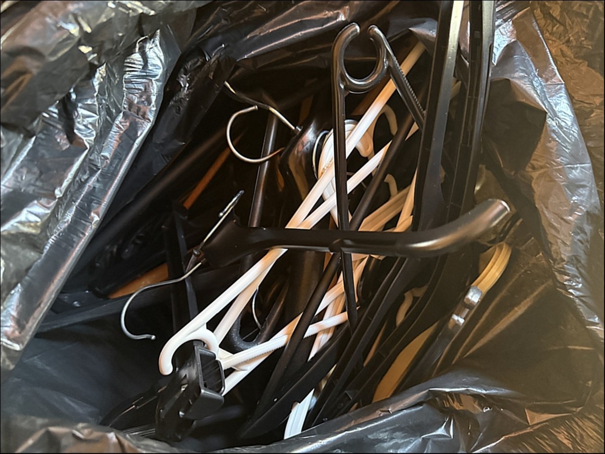 - Henkarit, 2 laatikkoa, 5 jätesäkkiä, metalliteline ja 3 kassia