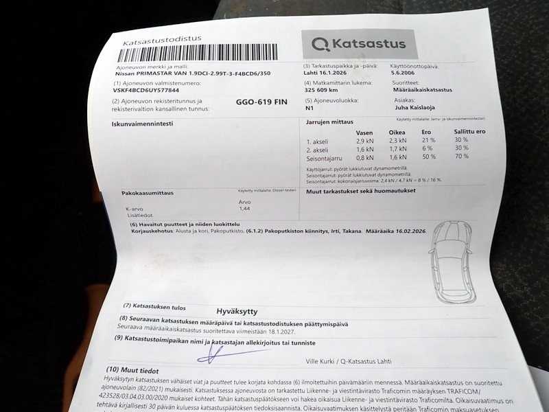 Seuraava katsastusaikaväli: 16.1.2026–18.1.2027