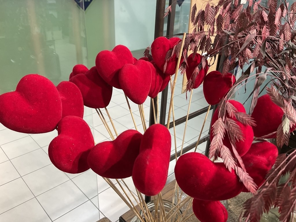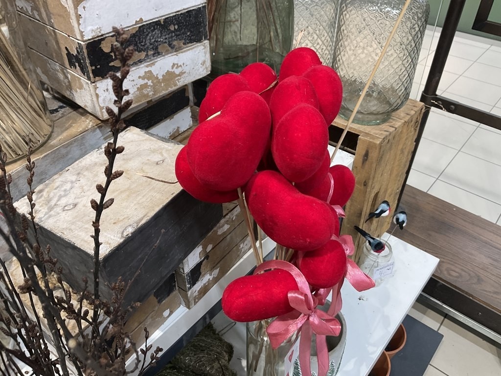 Punaiset sydänkoristeet tikuissa