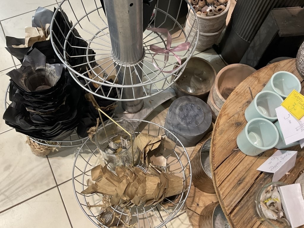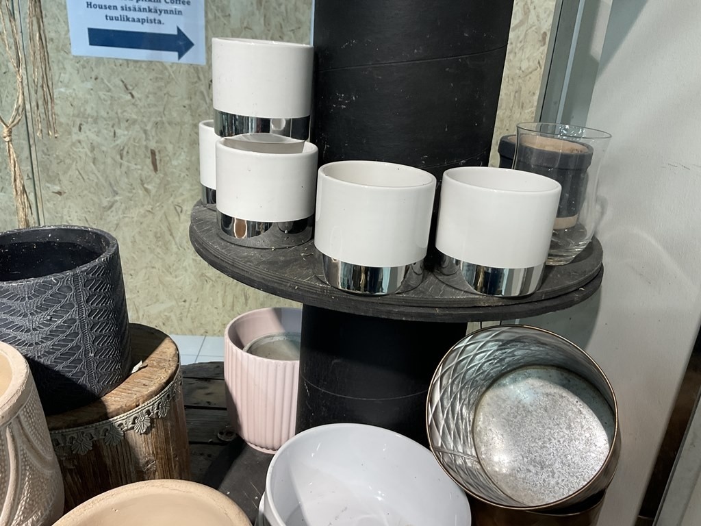 Myyntikohteet » Kukkakauppa Vivahde Oy:n konkurssipesä, TURKU (1993472-7), 17.04.2026 » 03. Esillepanokalusteet ja kukkakaupan tarvikkeet, ruukut ja sisustustuotteet