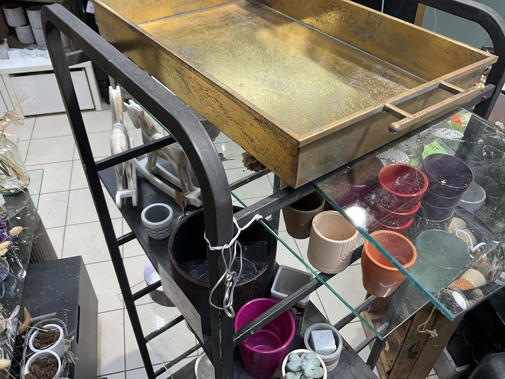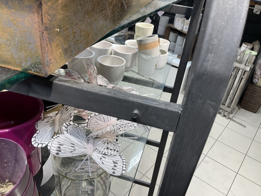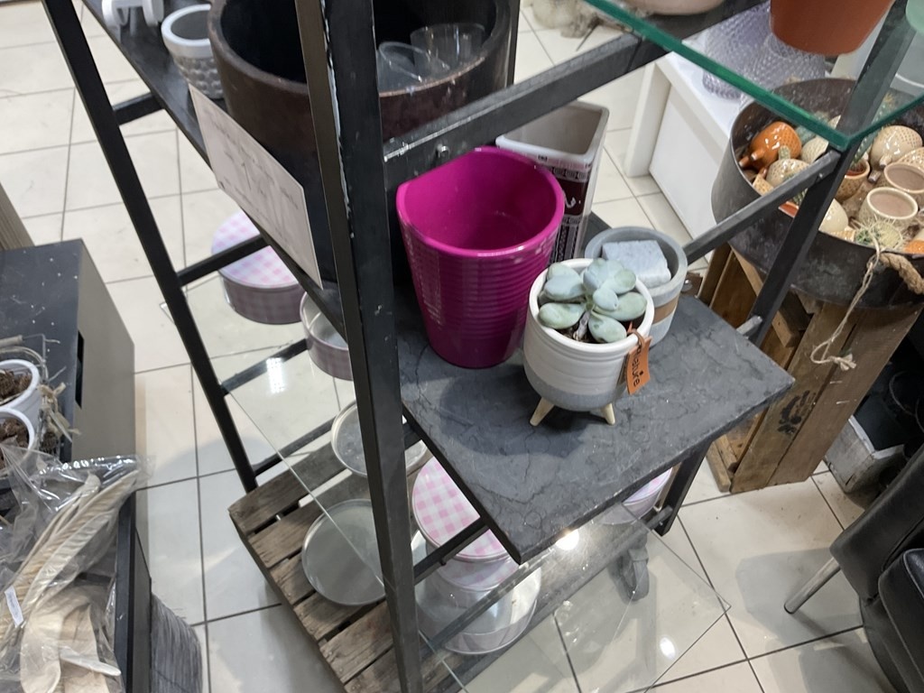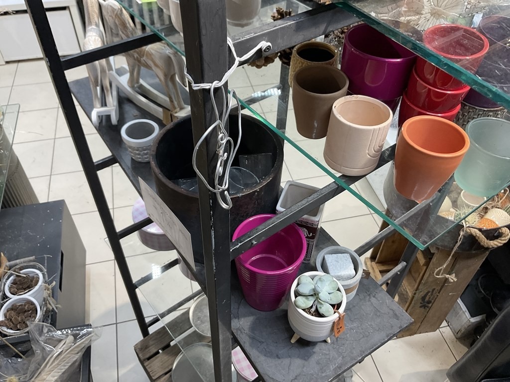 Myyntikohteet » Kukkakauppa Vivahde Oy:n konkurssipesä, TURKU (1993472-7), 17.04.2026 » 12. Metallirunkoinen hyllyteline ja ruukut