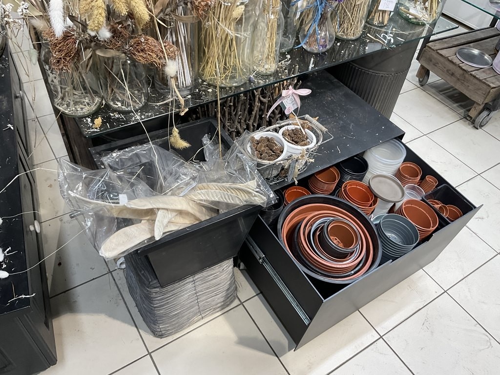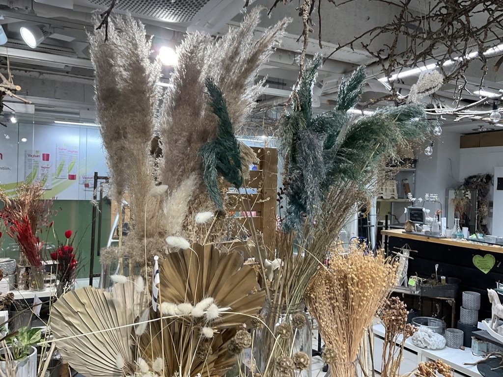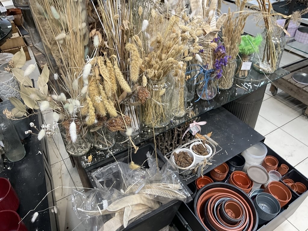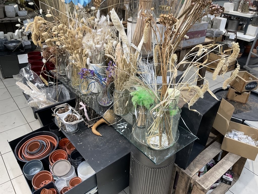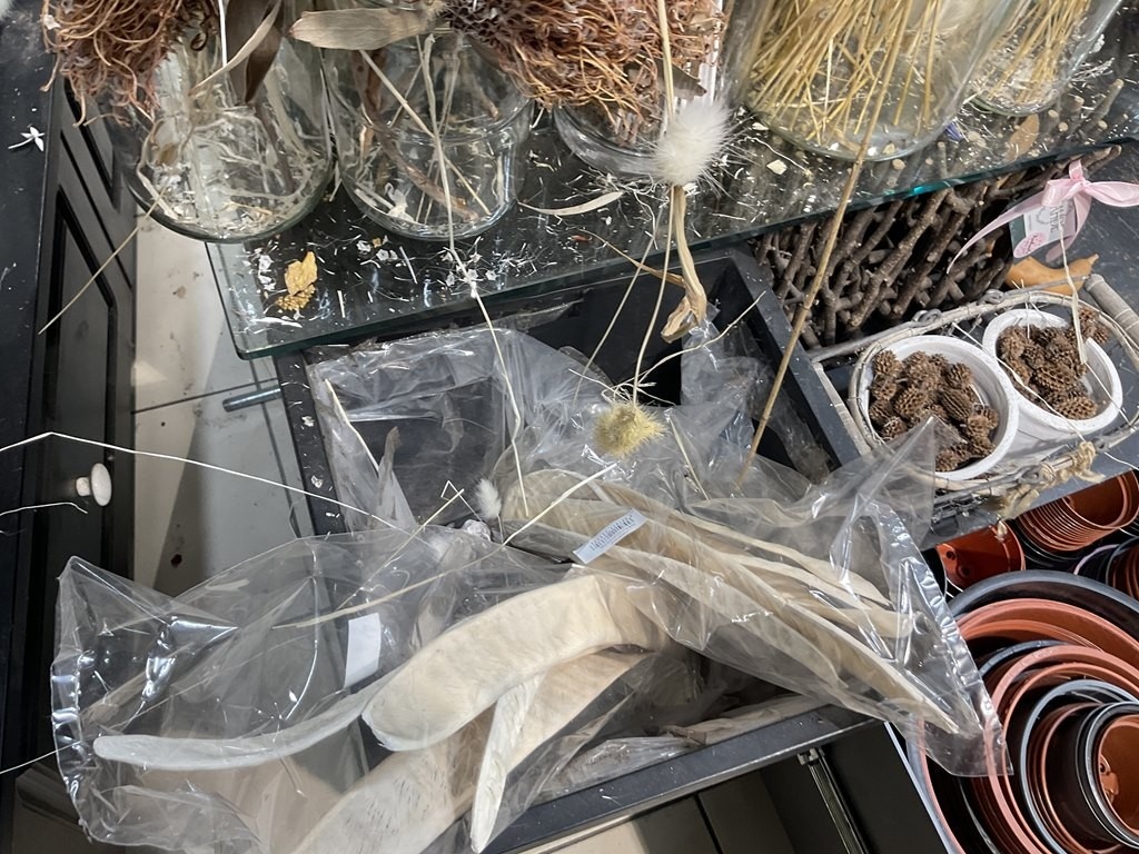 Myyntikohteet » Kukkakauppa Vivahde Oy:n konkurssipesä, TURKU (1993472-7), 17.04.2026 » 13. Kuivakukat ja sidontamateriaalit ym esillepanopöydillä