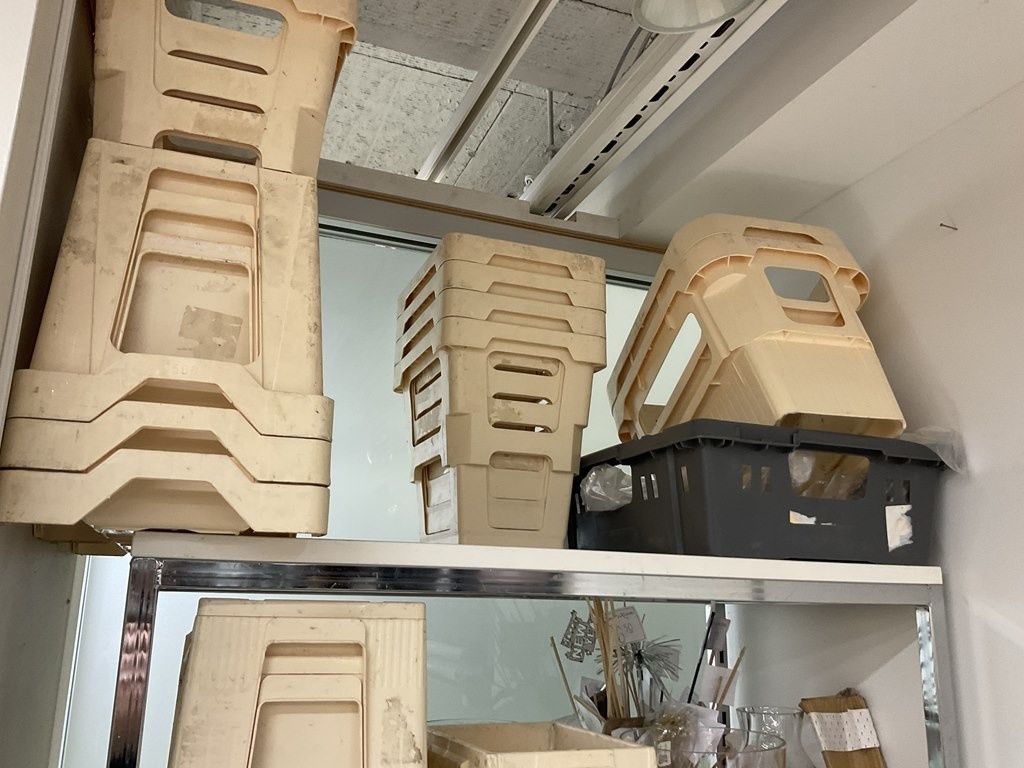 Myyntikohteet » Kukkakauppa Vivahde Oy:n konkurssipesä, TURKU (1993472-7), 17.04.2026 » 20. Floristin tarvikkeet, muovilaatikot ja kalusteet/tasot