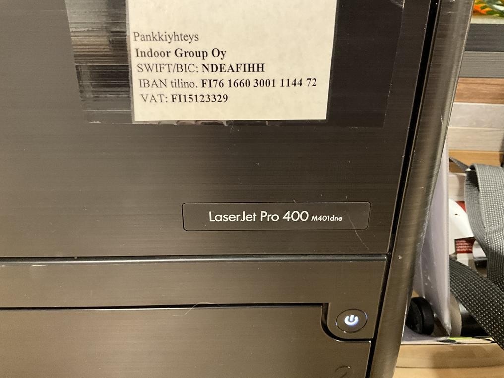 Myyntikohteet » 24. Indoor Group Oy:n konkurssipesä, JYVÄSKYLÄ (1512332-9), 19.04.2026 » J51. Palvelupisteen tulostin HP LaserJet Pro 400 M401dne, näyttö ja näppäimistö