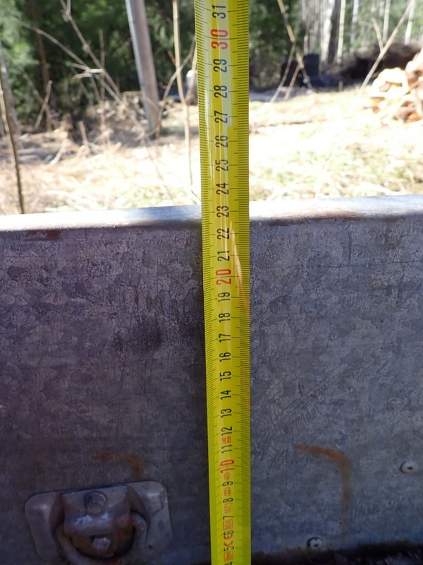 Kevyt teliperävaunu. Vaunun vaneripohja huono/rikki, valoja puuttuu. Myydään korjattavaksi. Sisämitta 218 x 125 cm, laidan korkeus 22 cm.