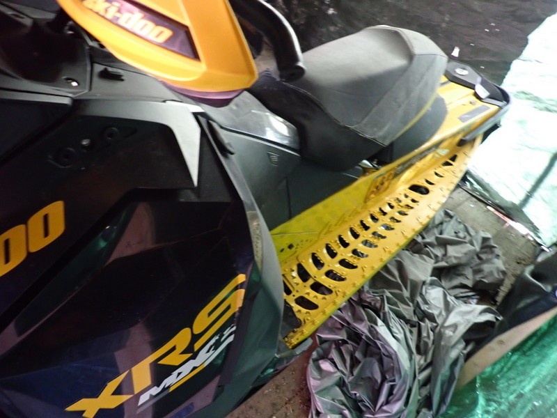 Moottorikelkka Ski-Doo MXZ X-RS 600 E-TEC vm. 2014. Huutokohde on valokuvassa oikeanpuoleinen musta kelkka.