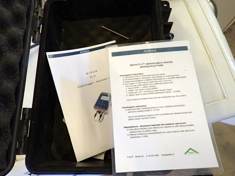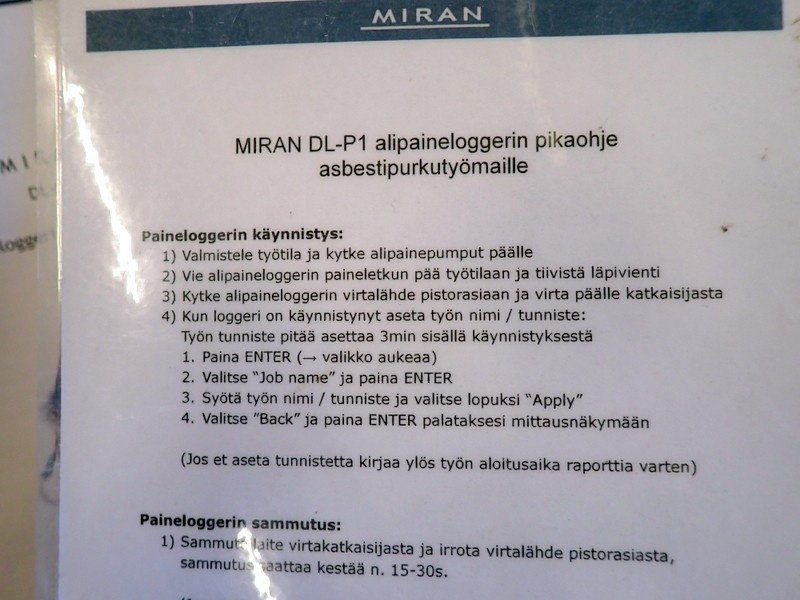 Alipaineloggeri asbestipurkutyömaille, laturi.