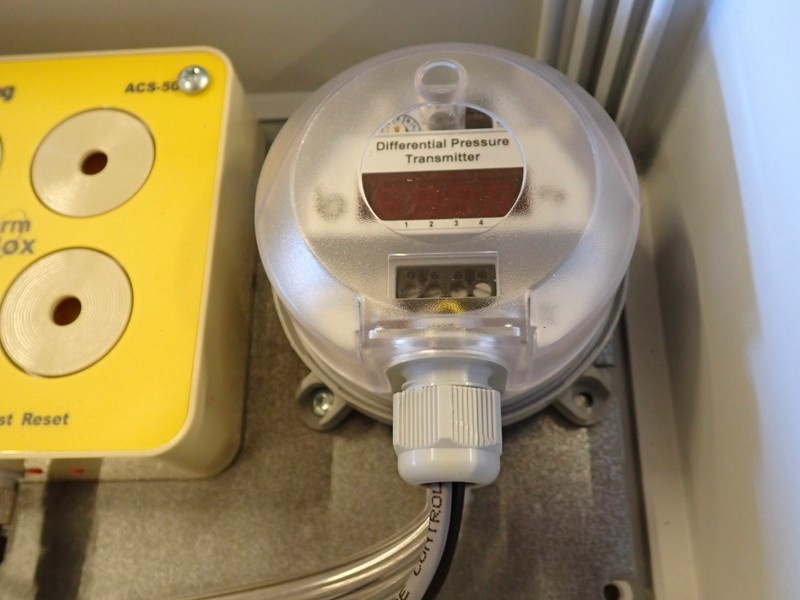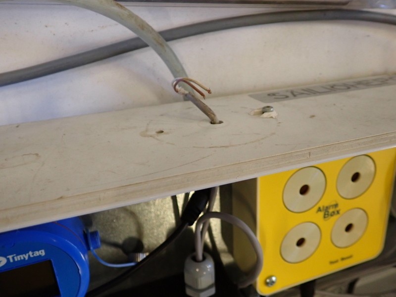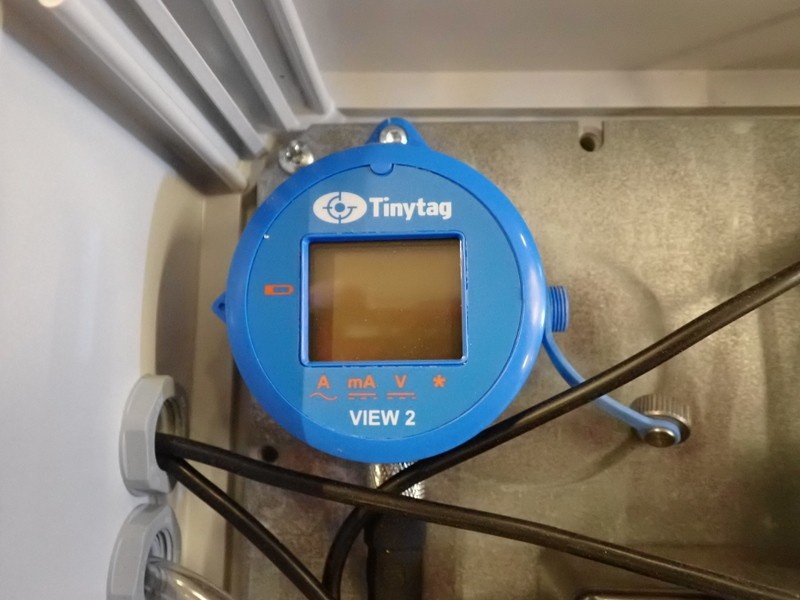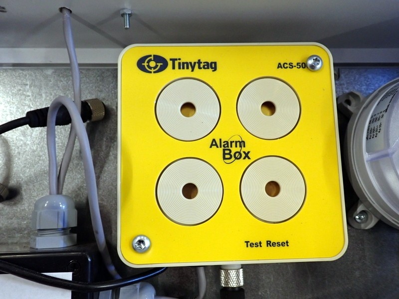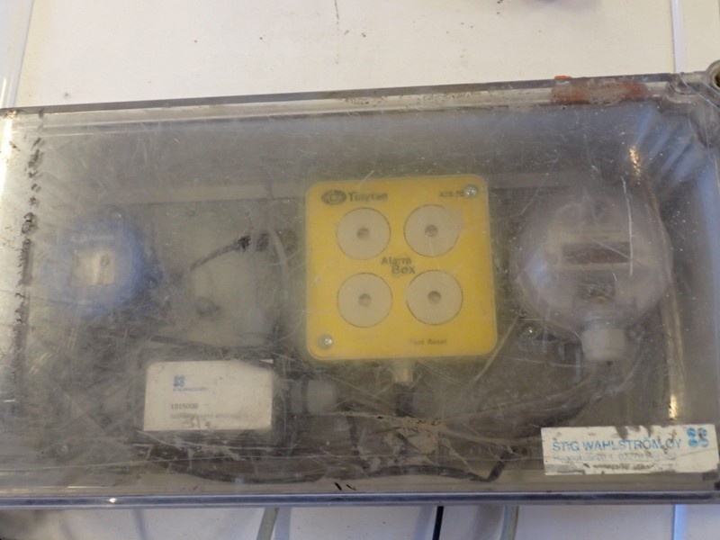 Dataloggeri hälyttimellä tiiviissä kytkentälaatikossa. Latikko avattu hetkellisesti valokuvausta varten.