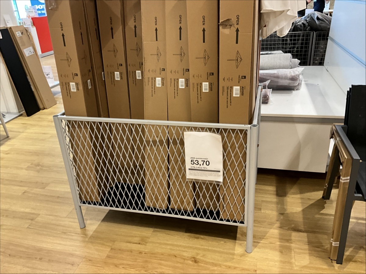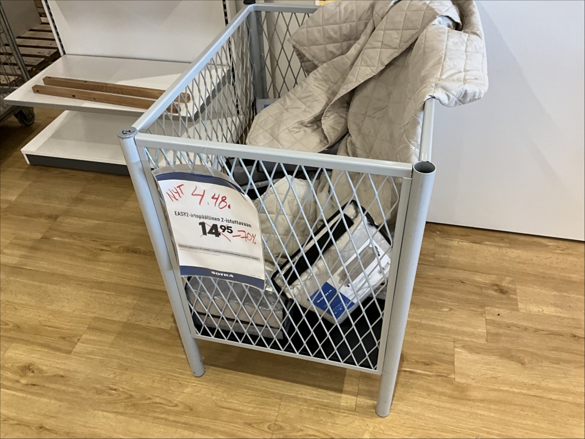Myyntikohteet » 25. Indoor Group Oy:n konkurssipesä, RAISIO (1512332-9), 22.04.2026 » R64. Myymälähäkit / lankakorit 13 kappaletta