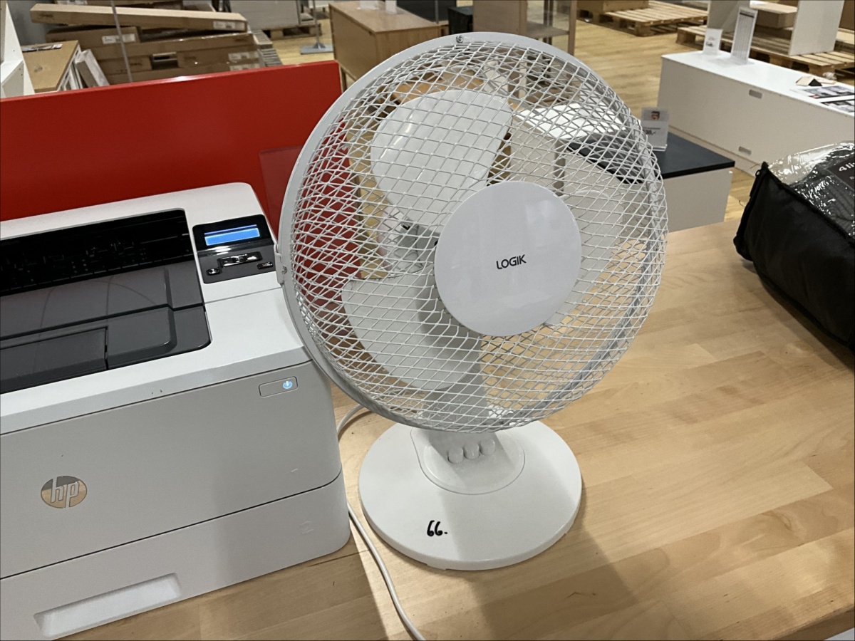 Myyntikohteet » 25. Indoor Group Oy:n konkurssipesä, RAISIO (1512332-9), 22.04.2026 » R66. HP LaserJet Pro M402n, tuuletin, näyttö ja näppäimistö
