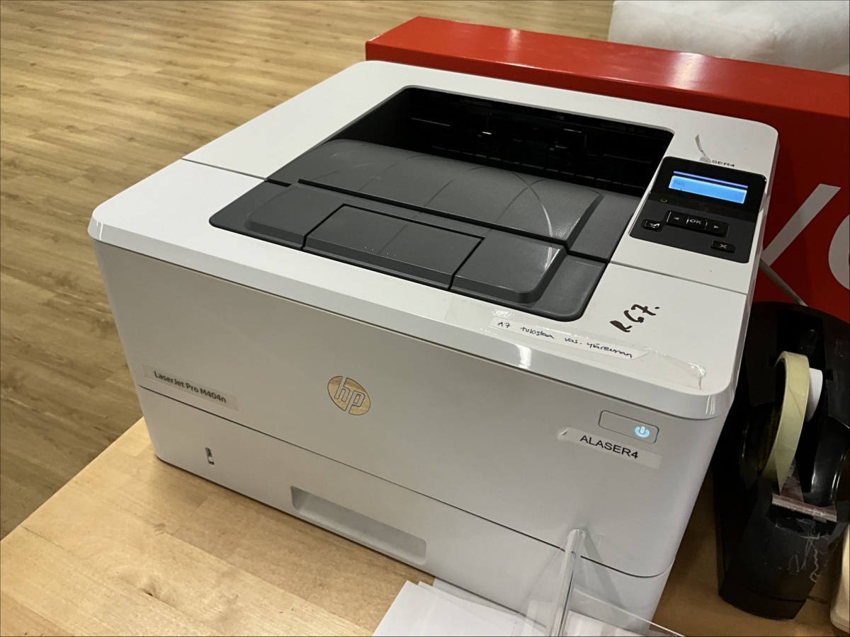 Myyntikohteet » 25. Indoor Group Oy:n konkurssipesä, RAISIO (1512332-9), 22.04.2026 » R67. HP LaserJet 700 m712, näyttö, näppäimistö, HP LaserJet Pro M404n, näyttö ja näppäimistö