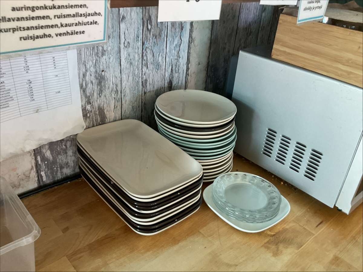 Myyntikohteet » 1. KakkuAnne Tmi:n konkurssipesä, LIETO (2405830-3), 22.04.2026 » 09. Mikroaaltouuni Point, korit 5 kappaletta, pöytätasolla olevat lautaset ym.