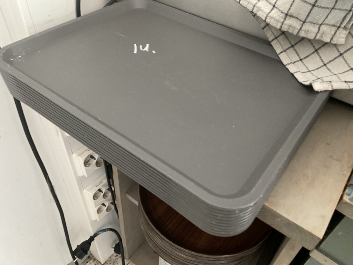 Myyntikohteet » 1. KakkuAnne Tmi:n konkurssipesä, LIETO (2405830-3), 22.04.2026 » 14. Keittohaude, tarjottimet 10 kappaletta, lautaset ja aterimet, hyllyllä olevat lasit / kupit ym.