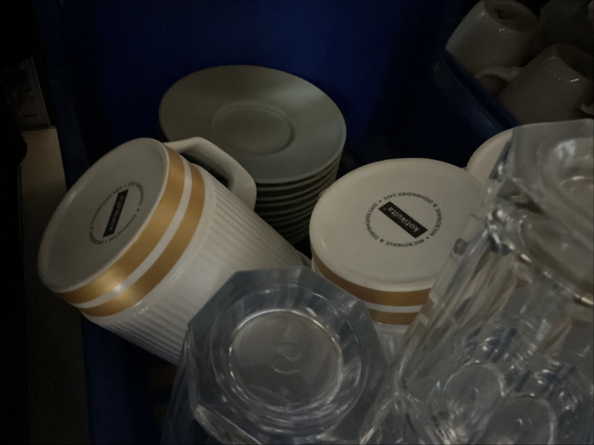 - Sekalaiset kahvikupit ja juomalasit (pieni määrä)