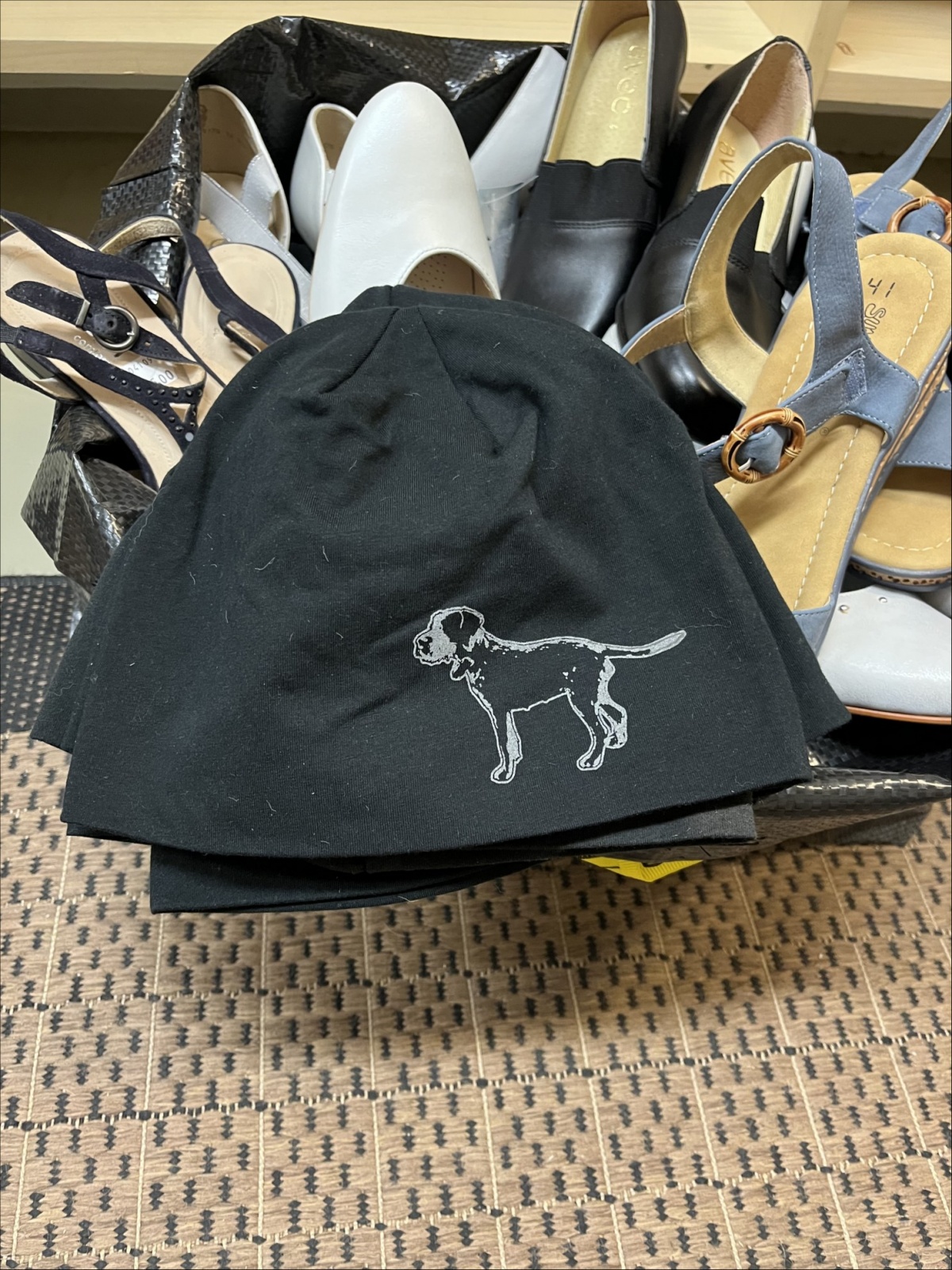 Lisäksi 6 kappaletta mustia pipoja koirakuosilla.