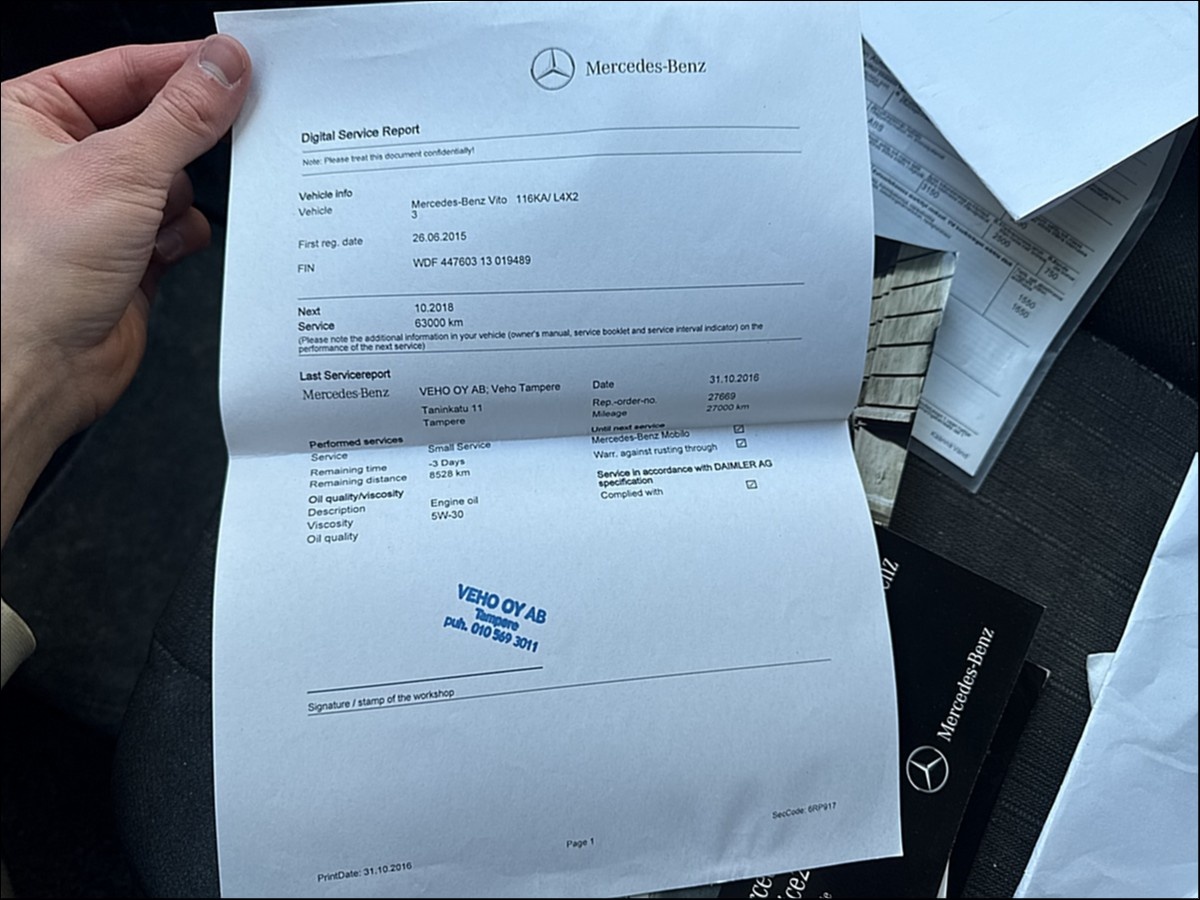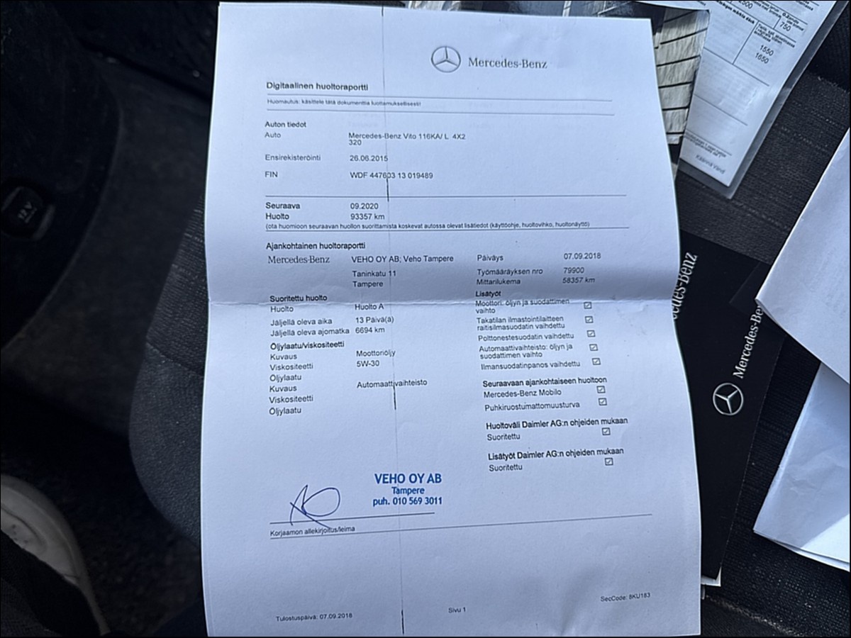 Myyntikohteet » 1. Leipomo-Konditoria Kataja Oy:n konkurssipesä (1837503-8), NOKIA, 28.04.2026 » 01. Pakettiauto Mercedes-Benz VITO 2.1 vm. 2015